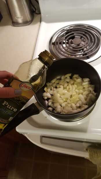3. chorrito aceite de oliva sobre las cebollas picadas.