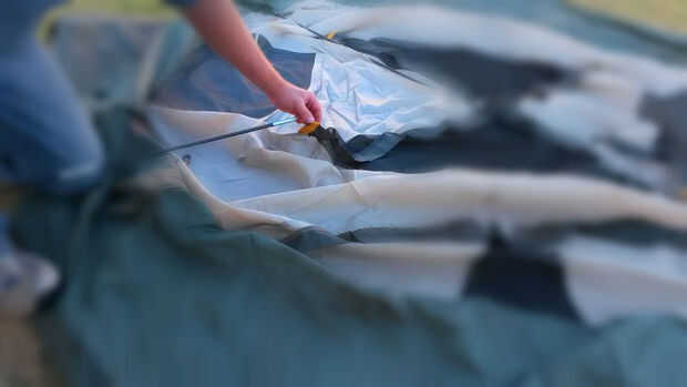1er lugar que los polos más grande a través de una X en la parte superior de la carpa en el bolsillo del patrón de los agujeros como se muestra arriba.