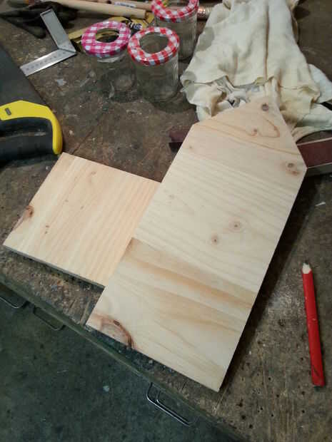 2 - forma de la madera para obtener una forma de casa. E importante! tienes que mantener los restos.