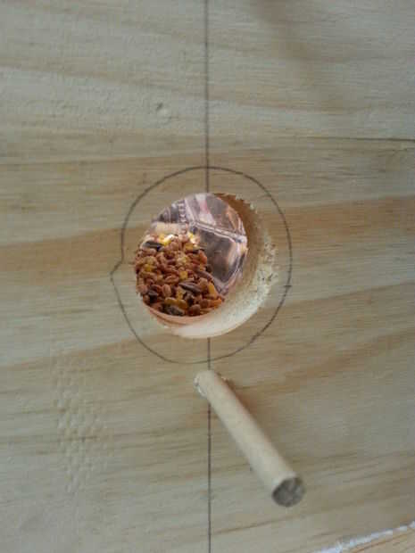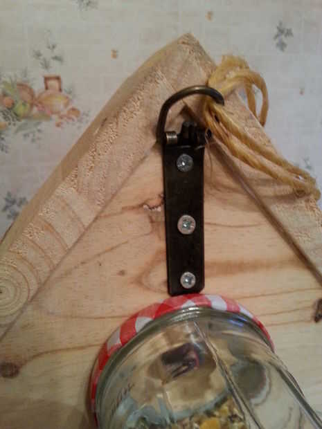 Colgar el comedero con jarra de madera y reciclado