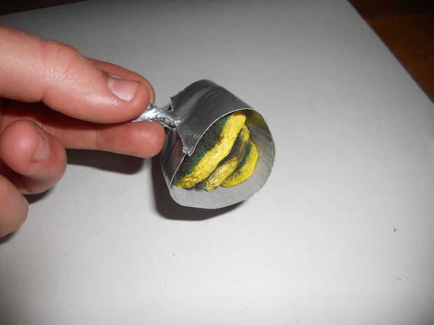 Usando la cinta del conducto, envolver la bola de esponja para arriba firmemente. Tirando firmemente en la punta del cono con la cinta le dará la pelota más de una forma redondeada del hemisferio. Aplasta la cinta hacia abajo en su palma a la forma como todo se pega junto.