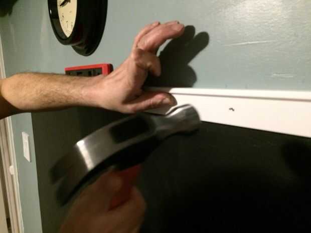 2. Fije la moldura superior con clavos de acabado de 1 1/4"