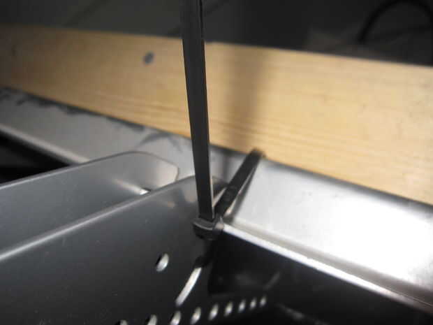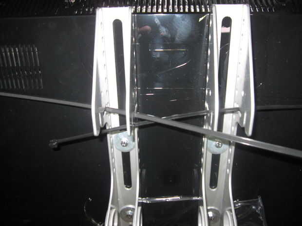 Mi hijo siempre es pawing en nuestra TV montado. Especialmente cuando Dexter está encendido. Investigué correas de seguridad de TV online. Parecían muy simples y pensé que podría lograr un nivel similar de estabilidad en mi. Mi soporte TV es un metal estudio soporte "universal" por lo que tiene una abundancia de diferentes agujeros para dar cabida a todo tipo de televisores. El soporte está diseñado para que el TV se puede levantar en el soporte. Con mi hija y su obsesión de Dexter es peligroso porque podría levantarse sobre la TV soltarlo del soporte y hacerlo caer encima her.... le fijación entre el piso y su show de asesino en serie favorito. Decidí que podía utilizar abrazaderas de plástico resistente para sujetar la TV al soporte de montaje y evitar la TV de ser liberado del soporte.