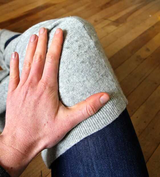 Yo prefiero colocar la prenda sobre mi rodilla, ya que la tela de mis pantalones vaqueros normalmente estabiliza a la tela del knit. También puede utilizar una plancha o tabla para poner su ropa plana.