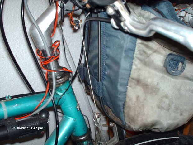 Palanca de la montura cambia delantero y trasero y enlace para los frenos para que el interruptor se cierra cuando el freno funciona. Interruptores de cable en paralelo. I utilizar interruptores con rodillos y atado trenzado línea de peces de dacron para el rodillo y el cable del freno (con un ' enganche de línea enseñó' en un extremo para permitir ajuste) - interruptores también podrían montarse para que el movimiento de pinza funciona las palancas...