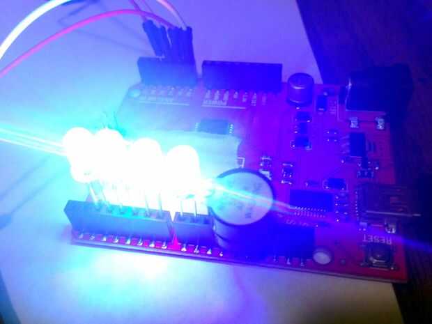 Esto le da los planes para instalar la versión más rápida de un sistema de timbre tipo quiz show que he visto. Sólo necesita un par LEDs, algunos clips de gator y un Arduino, y usted tendrá un sistema de timbre para 4 personas en menos de 5 minutos! Todo encaja perfectamente en una mesa regular; listo! Como un bono, este utiliza Cap-touch sensing para el timbre, así que básicamente se puede utilizar casi cualquier cosa como su timbre, como un coco o de soda, o incluso tu amigo.