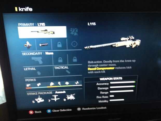 Vas a tener que hacer una clase para el sniper. la clase que utilizo es un L115 con juntar las piezas de armadura y chrome.the ventajas que usar están listos, en el camino, QuickDraw, resistencia y utilizarlos sólo como extras hardline y ping y que es la clase de que uso. Recuerde que puede cambiar esto para arriba o incluso hacer tu propio pero asegúrese de que se ajusta a tu estilo.