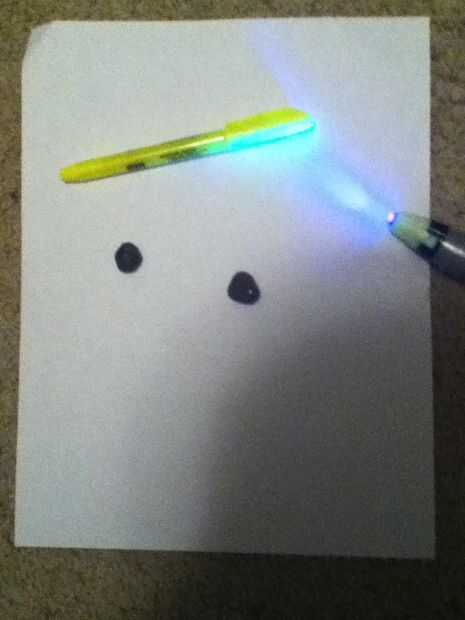 Un papel 8.5X11 ordinario (no cartulina) opcional: fuente de luz negra tijeras rocas grapadora marcador como un resaltador amarillo, marcadores de pipsqueak de crayola (limitado a: dar diversión súper contento, árbol, sol y colores impresionantes