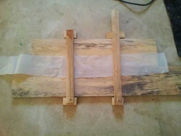 Coloque sus abrazaderas sobre la pieza de trabajo. Otra vez no olvides el plástico de la hoja para colocar entre las mordazas y la pieza de trabajo.