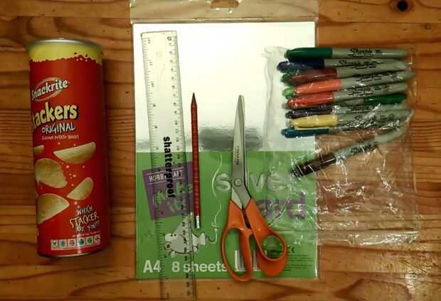 - Una hoja A4 de espejo tarjeta (o tarjeta plata brillante)