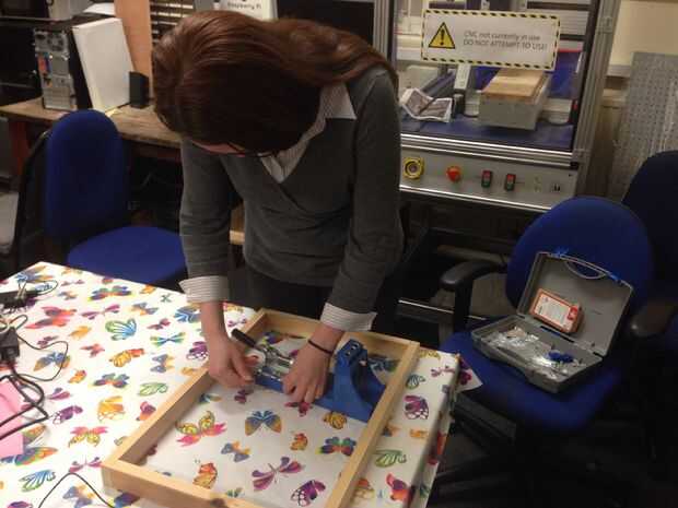 Una vez que lo ha hecho, arena cuidadosamente todas las piezas del marco, para que esté completamente lisa y plana - Esto asegurará buenos resultados cuando la pantalla después de la impresión y asegúrese de que no hay ningunas astillas que puedan dañar la malla (o dedos).