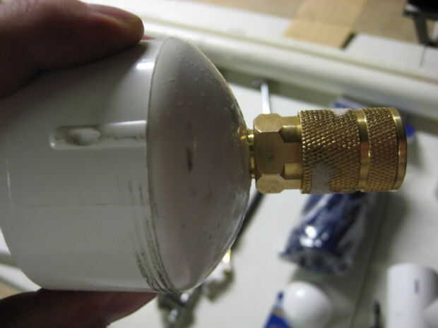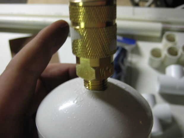 Aprovechar este agujero con la toma de 1/4 pulgada NPT . Si no tienes un grifo que se puede trabajar el latón conexión lentamente.)