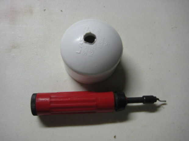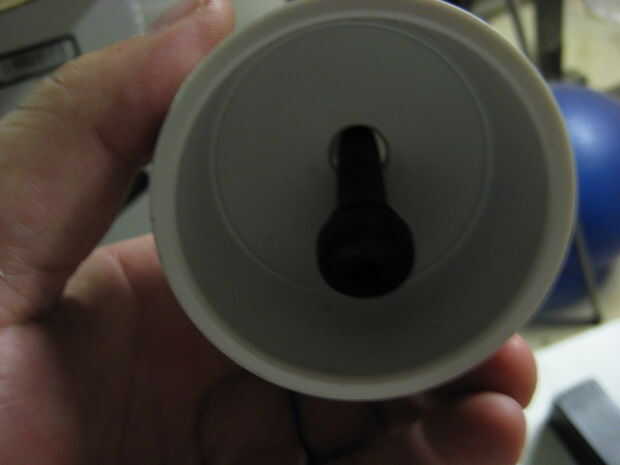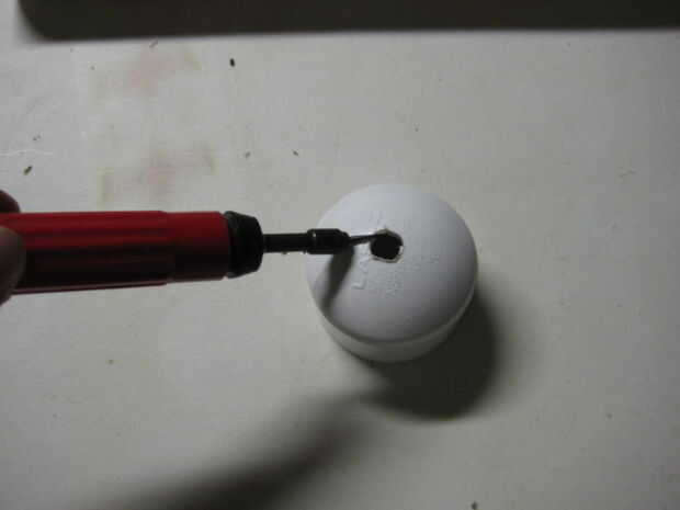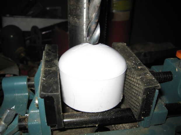 Utilice el taladro de 7/32 (3/16 trabajará en un apuro) Perfore un agujero en el centro de una segunda cubierta del extremo.