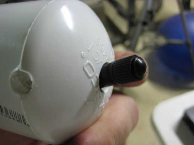 Empujar el extremo tapado de la válvula schrader a través del interior de la tapa y tire a través de utilizar asas o pinzas. Se establece cuando se ve incluso.