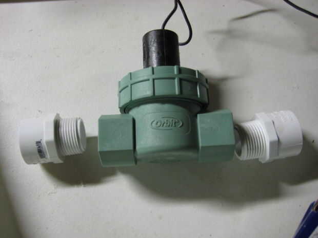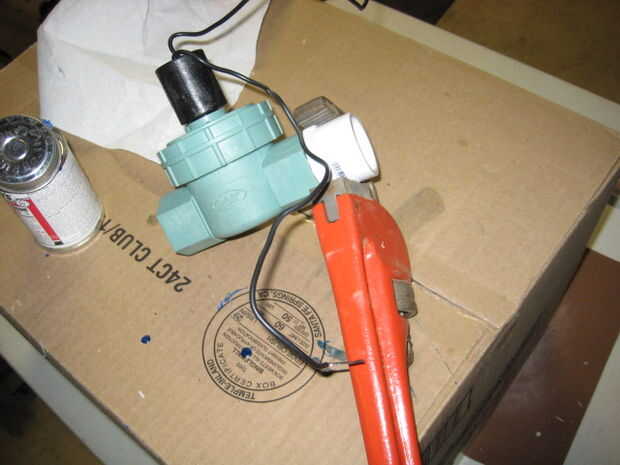 Une los acopladores de rosca de 1" a la válvula del aspersor. (Utilicé una llave de tubo a).