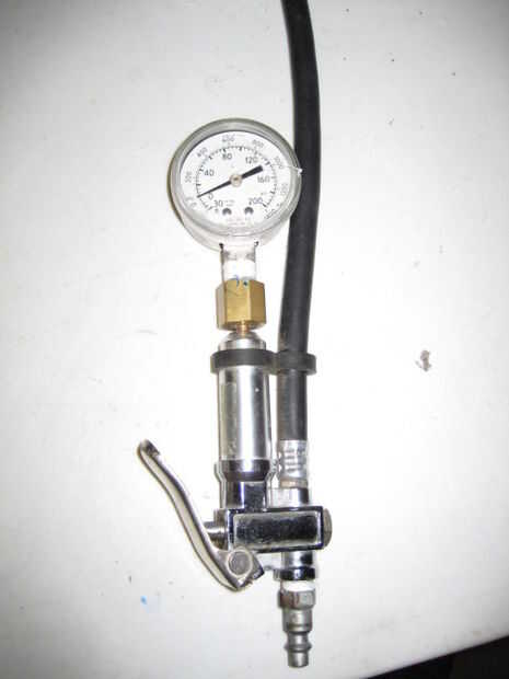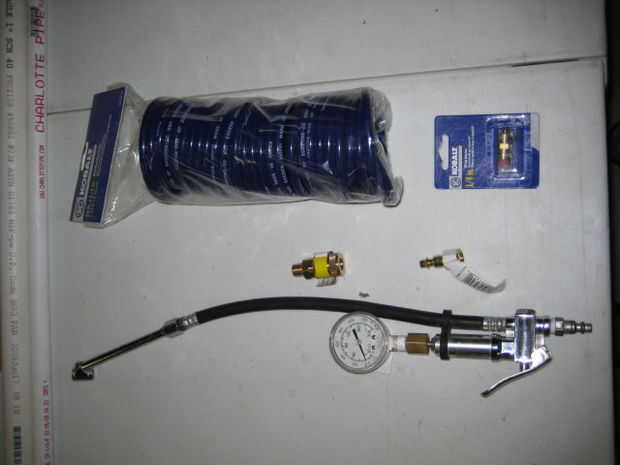 2 acoplar el manómetro de presión de válvula de aire a un extremo de la la manguera de presión utilizando el 1/4" adaptador del barril.