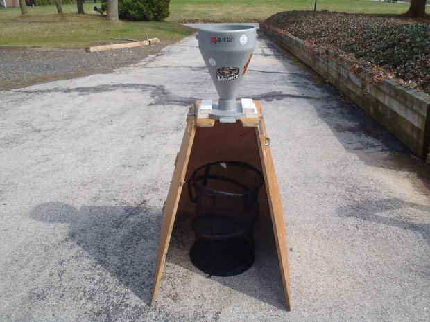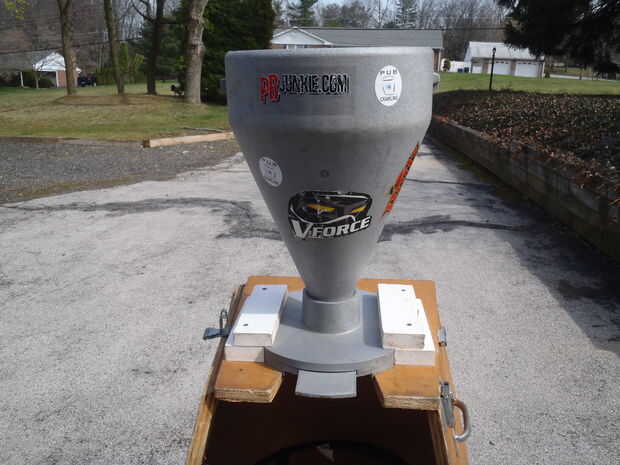 El stand funciona con un cargador de Pod de Paintball de AJP. Este encargo fue diseñado por mi compañero de equipo Chris "Tetera" caña y fue construido por uno de los contratistas que trabaja con. Yo simplemente inversa había diseñado así podríamos publicarlo aquí.