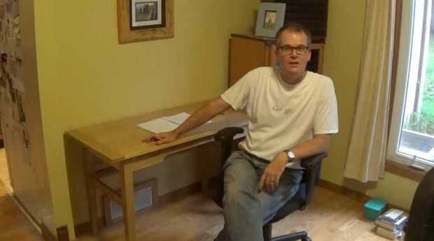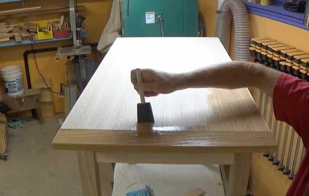 Terminé usando seis capas de poliuretano en la parte superior. Quería un acabado sólido, como un escritorio tiene que soportar algún uso duro. Las dos últimas capas se limpiaron con un trapo, que dio un acabado más liso que con el pincel de espuma.