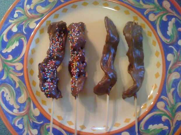 Su tocino cubierto en chocolate.Paso 1: Conseguir cosasSe reúnen bacon microondas, una barra de chocolate (y si no tienes una caldera doble) un tiesto pequeño y un recipiente.Paso 2: Derretir el ChocolateCalentar la estufa a fuego medio. Añadir un po