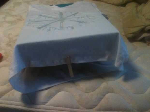 Luego, estirar a la tela sobre el tablero o caja y use alfileres de la ropa para sujetar enseñó para hacer más fácil para que usted pueda dibujar sobre su tela con pegamento.