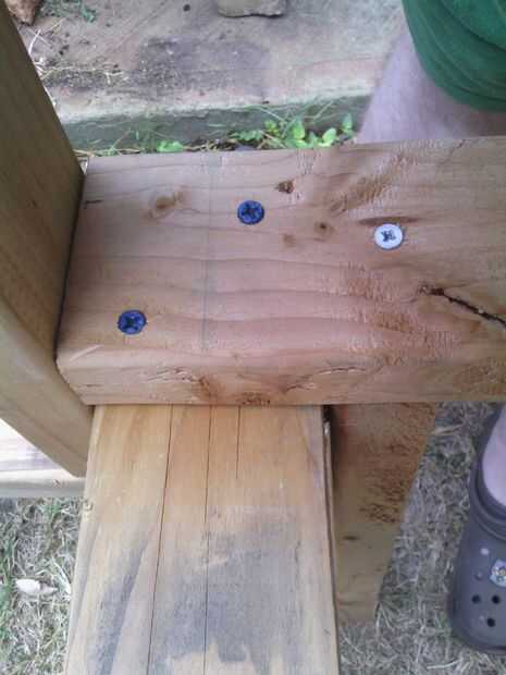 los tornillos blancos están conectando las piezas de 2 pies entre sí