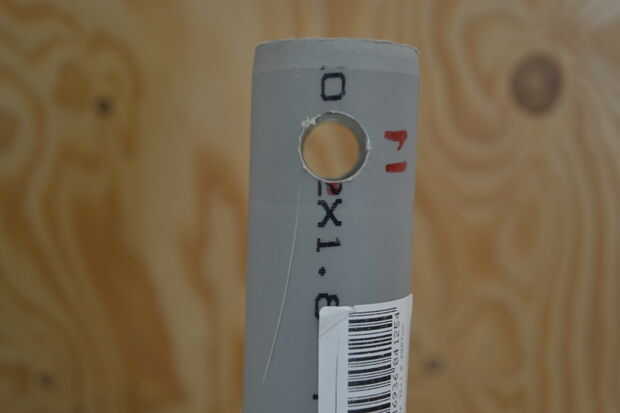 Paso 1, perfore agujeros en el tubo de PVC. Es mejor comenzar con la parte inferior y superior, la distancia entre ellos exactamente el ancho de la cometa. Nosotros entonces también los orificios perforados con un intervalo de 20 cm entre el orificio de la parte superior e inferior.