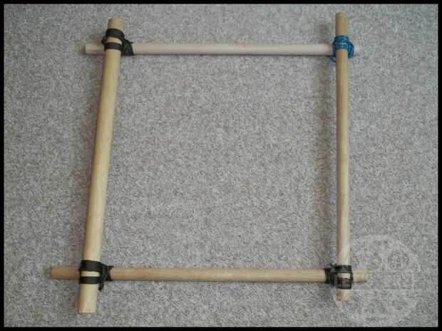El ejemplo ilustrado aquí es sólo un marco muy básico de 4 polos y alguna cuerda paracord/utilidad. Es sorprendentemente robusto y rígido. Dependiendo del uso previsto esta estructura básica podría ser más estabilizada con cruzar postes que se atan con un amarre diagonal (que será tema de la siguiente parte de esta serie).
