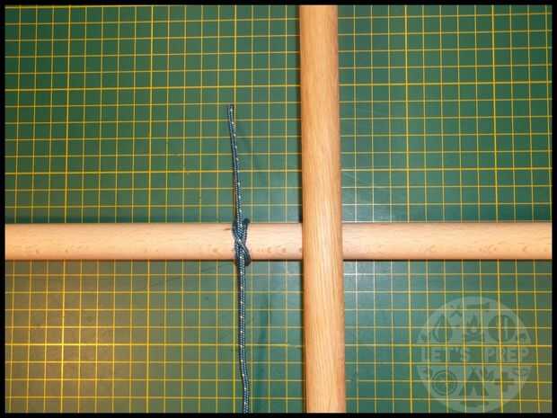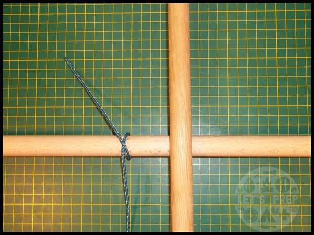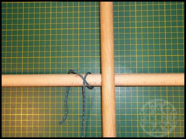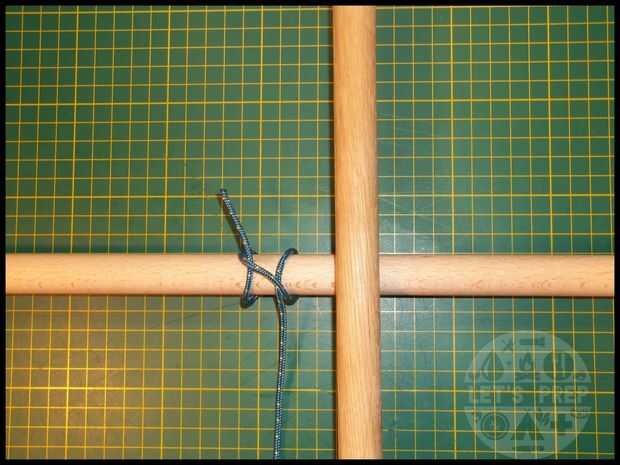 Este método tiene el poste vertical sobre la horizontal y cuando se usa este amarre para construir un marco prefiero iniciar el amarre en la parte interior del marco.