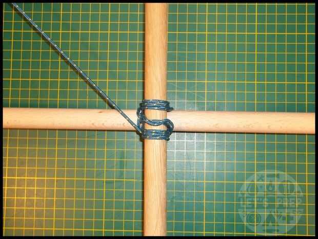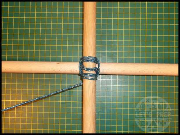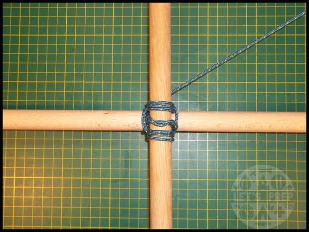 Cuando haya completado dos vueltas frapping la cuerda debe terminar sobre el poste horizontal en el mismo lado que empezaste de (esto sin embargo no es imprescindible).