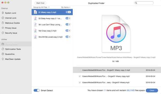 Utilizando el Buscador de duplicados de sus Herramientas de limpieza, usted puede fácilmente seleccionar los duplicados en la carpeta específica o todo el disco duro de tu Mac. Puede seguir 4 pasos para hacerlo rápidamente.
