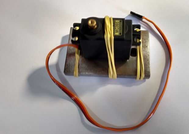 Utilice un pisapapeles o cualquier cosa que sea tan pesado o más pesado que el teléfono inteligente mantener el servo en posición cuando está girando. Atar con alambre, cuerdas o bandas de goma. Si encuentras una manera de fijar el servo en su sitio, podría funcionar incluso mejor.