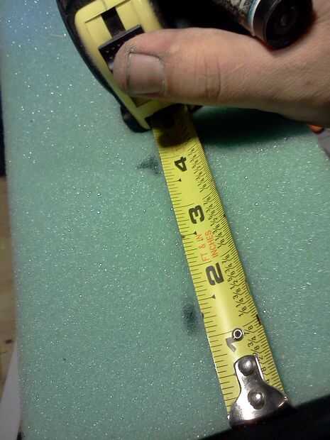 5. Mida su espuma en la parte de arriba hasta la mitad y marcar este punto.