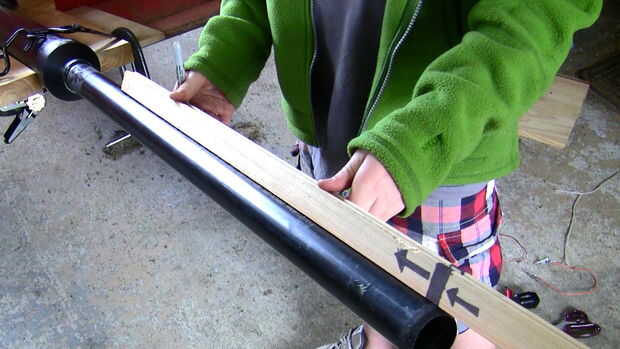 Que hicimos y claramente marcada una varilla de madera ram para asegurar el Papa nunca se empuja demasiado lejos en el barril - la papa en la cámara de combustión no es tener una buena idea!
