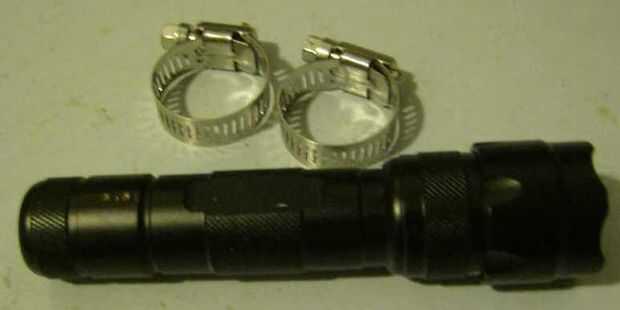 No quería gastar mucho dinero en un casco "real" de luz, así que salió y compró una linterna comparativamente barata. Los problemas luego fueron; ¿Cómo montarlo? ¿Cómo puedo obtener el rayo de luz donde lo quiero? ¿Cómo puedo hacerlo fácil de m