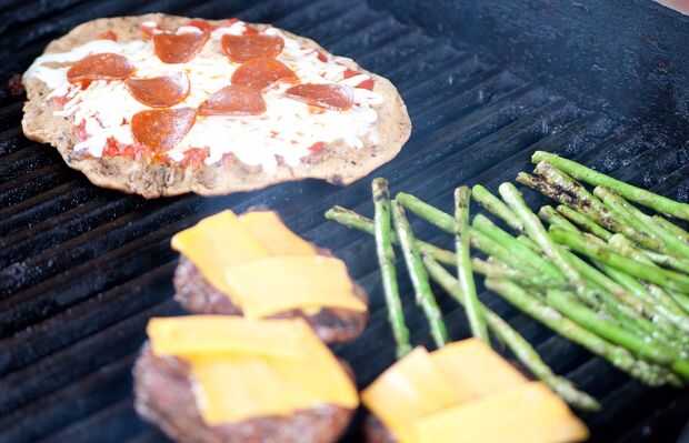 hacer pizza fácil en casa - mejor que pedir pizza. También es bueno para cuando usted desea hornear pizza pero demasiado caliente para poner el horno a 500 grados.Vas a necesitar la masa de pizza y toppings de la pizza. Y una parrilla.Usted puede uti