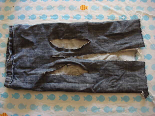 Ahora cortar la tela por la mitad de la porción más ancha hacia la Flaca dejando por lo menos 2 pulgadas de la tela en el extremo. Esta dos pulgadas creará el cuello del chaleco y mantener a tu amigo mientras que correr y jugar.