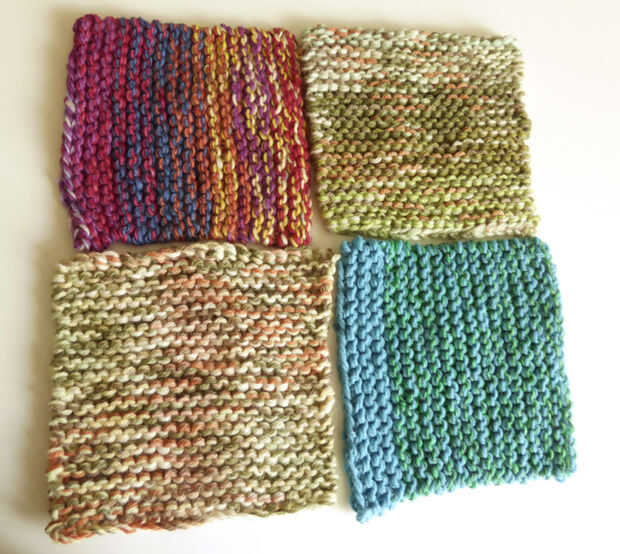 En una tarde, hice 4 de estos cuadrados, así como tomar todas las fotos de este Instructable. Soy un experimentado tejedor, pero incluso un principiante debería ser capaz de acabar con una pareja sin problemas. Prueba combinaciones y diferentes hilos. Hacer una pieza de muestra antes de hacer un conjunto, como reacciona hilado no todo lo que esperas. El azul y el verde uno era mi favorito antes de él fue en la lavadora, pero resultó ser un desastre (véase abajo) porque los dos tipos de hilo no sentía lo mismo.