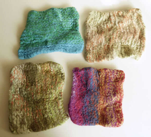 Lay out y aplanar con las manos. Te puede tirar y prod un poco para conseguir una forma más uniforme, pero no trate de estirar hacia fuera demasiado. Después del primer lavado, estos no eran encogidos bastante, así que corrí a través de una segunda carga de toallas y estaba más feliz con el fieltro. Se reducirá hasta un poco más las primeras veces que lava ellos, pero no mucho después de la primera pareja de lavados.