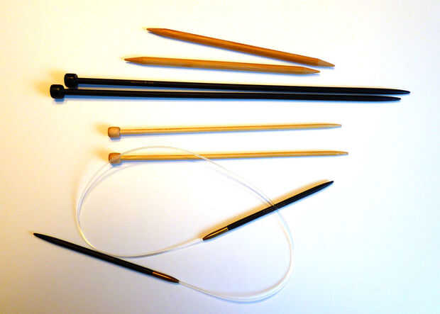Usé agujas de doble punto de bambú barato 8,00 mm (tamaño de los E.E.U.U. 11) porque eso es lo que tenia en un buen tamaño grande. Mis agujas están 8" de largo y no tengo problemas con puntos de sutura cae"otro fin". Pero si usted tiene doble agujas de punto y tiene un problema, sólo pegar algo como un poco de corcho en el extremo que usted no va a utilizar.