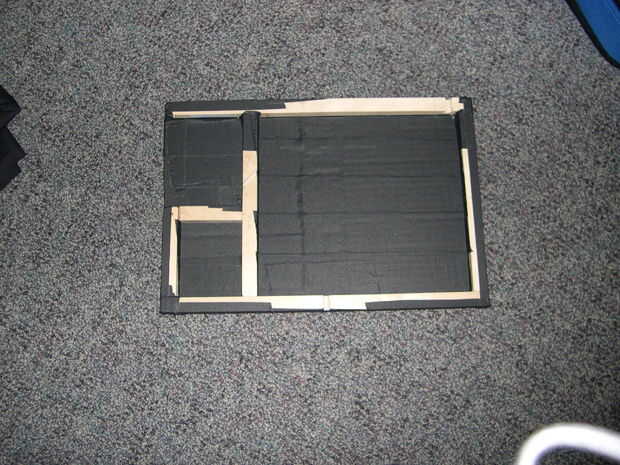 Luego necesitas colocar un fondo duro en el marco. Elegir cartón puesto que era libre y fácil de cortar. Yo básicamente sólo grabó lo al marco muy bien y entonces cubierto en cinta en el interior para que sea uniforme y bien aislado contra electrónica. Usé cinta de adhesiva pero es probablemente excesiva y cinta debería funcionar igual de bien para este paso.