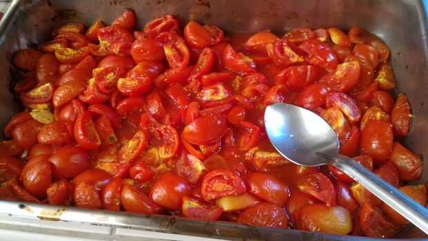 Espero generalmente hasta que los tomates no se enfrían totalmente, pero este año estuve en una prisa para, así que procesado cuando todavía relativamente tibia--te preocupes, colocar los tomates en la parte superior y el asa de la manivela y sus manos nunca están realmente en riesgo de contraer por supuesto quemado--tomar precauciones si se trabaja con los niños!