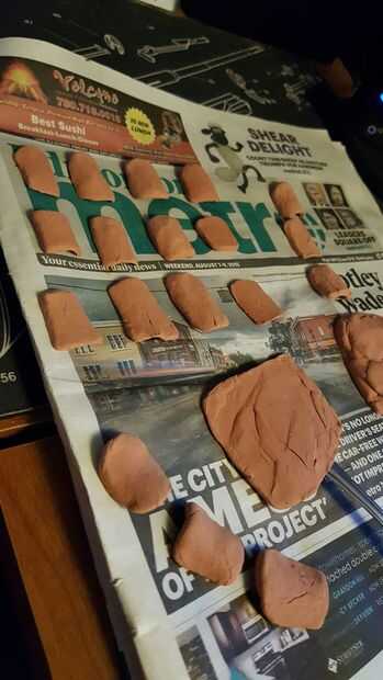 Si tu teniendo problemas para, hacer una pequeña bola de arcilla para cada pedazo de dedo, aplanarla y cortar la forma del dedo.