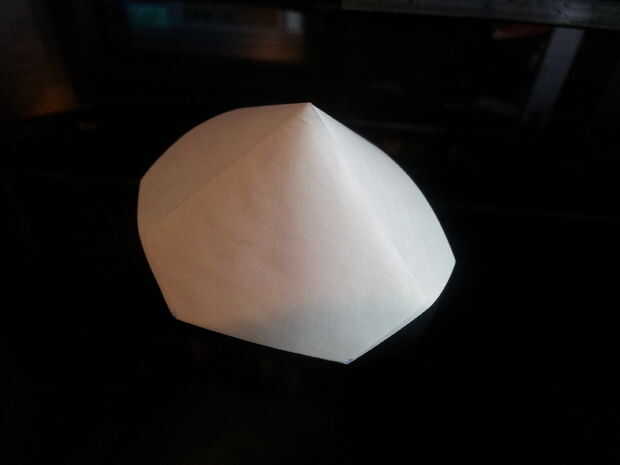 Corte a lo largo de las líneas previamente marcadas al centro del papel luego superposición para hacer un cono.