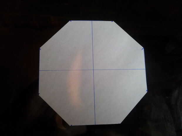 Luego mide 1" de cada esquina, marcó la diagonal y cortar para hacer la plaza un octógono.
