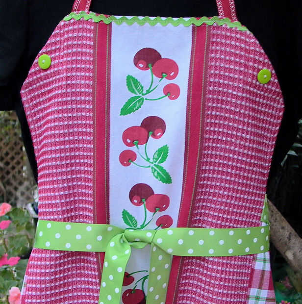 un divertido y sencillo delantal para coser en todos los niveles de personas. Elegí las toallas ya que ya sea tiempo o habilidades son un factor, los dobladillos ya para usted! Ahora hay tantos lindos y elegantes toallas hacia fuera, o puede utilizar una toalla vintage que ha estado ahorrando para un propósito especial y combinarlo con una versión más reciente. Este delantal pequeño es muy rápido de hacer y sería un divertido proyecto para preparar para una fiesta temática o para hacer como regalo de anfitriona o ducha. Permite comenzar!