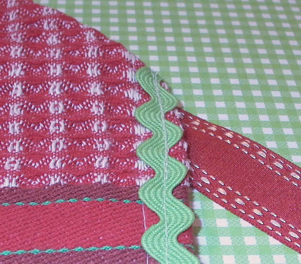Ahora coser el adorno en la parte superior de los paneles de la plataforma de centro que se muestra en la Foto2