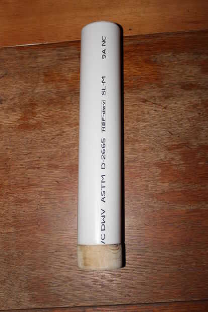 pegamento de elmer un poco alrededor del borde rellenará cualquier imperfección en el ajuste entre el enchufe del tallado y el tubo de PVC.