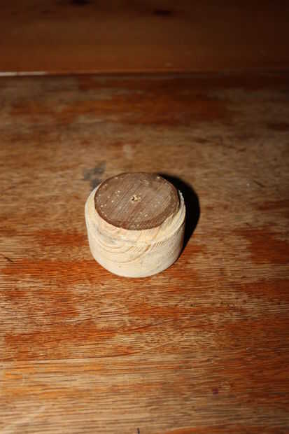 Ya que no tengo acceso a un torno que tuve que usar un cuchillo para tallar una hendidura en el borde superior de la clavija de madera para que encaje en el extremo de la tubería de PVC.