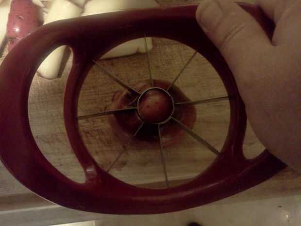 Paso 3: Patata estándar para arriba en su extremo en su lugar el cortador de apple en la parte superior