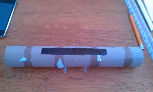 -Insertar dos chinchetas en un lado como pies para mantener el tubo